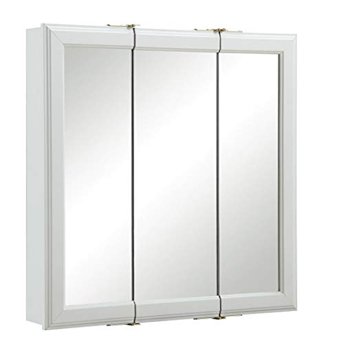 - Pre-assembled surface mount cabinet features 3 mirrored doors for numerous viewing angles and a classic white finish
